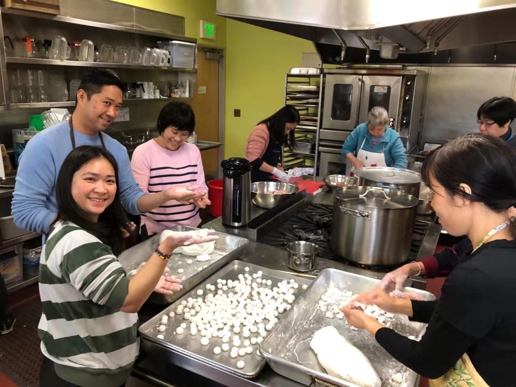 Taking place in the community space of the Chinatown YMCA, we cooked Tong Yun (Cantonese) or Tang Yuan (Mandarin), a sweet or savory treat usually prepared and eaten during the Winter Solstice. In addition, we prepared an impressive pot of soup, enough for all of the attendees, containing a wide variety of ingredients including chicken, Chinese sausage, daikon, ginger, green onion, fish, mushrooms, pork, and shrimp.