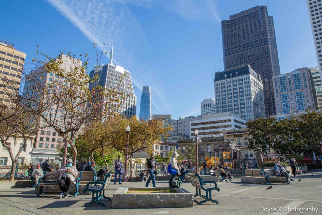 When you look outside of the window from CAA’s office, you see Portsmouth Square. This is also known as Chinatown’s “living room.”