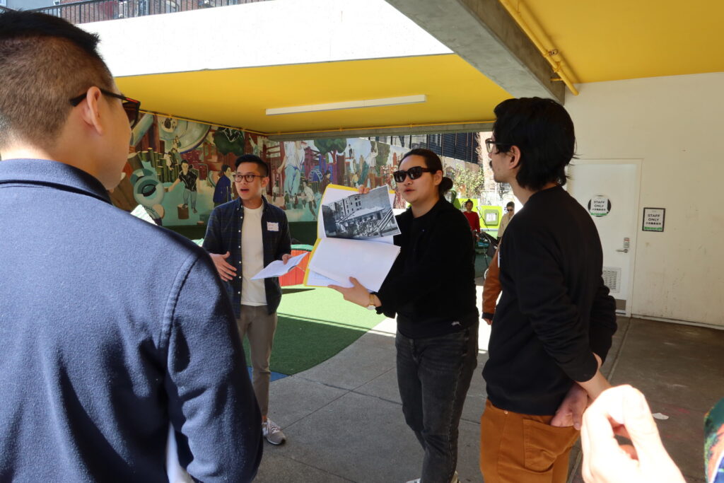 We start at CAA’s office, located at 17 Walter U Lum Place. Our team provides direct, in-language services for Chinese-speaking community members to help people apply for jobs and connect them to advocacy opportunities. CAA is also a co-founding partner of Stop AAPI Hate. This building itself is part of the history.